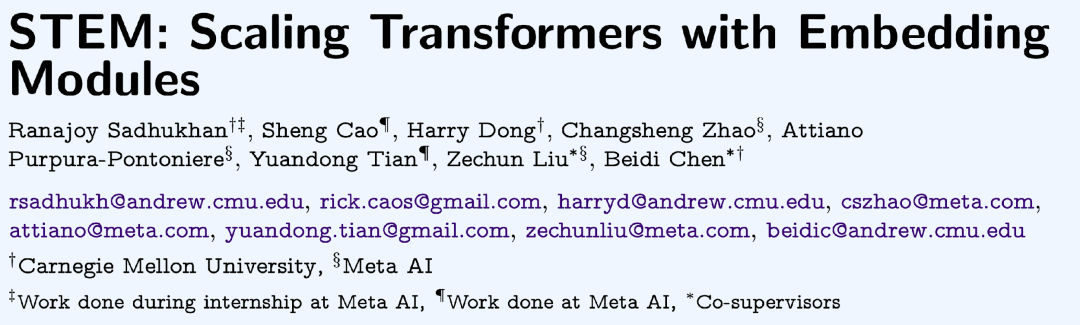 ICLR论文STEM架构率先提出「查表式记忆」架构,早于DeepSeek Engram三个月。它将Transformer的FFN从动态计算改为静态查表,用token索引的embedding表直接读取记忆,彻底解耦记忆容量与计算开销。